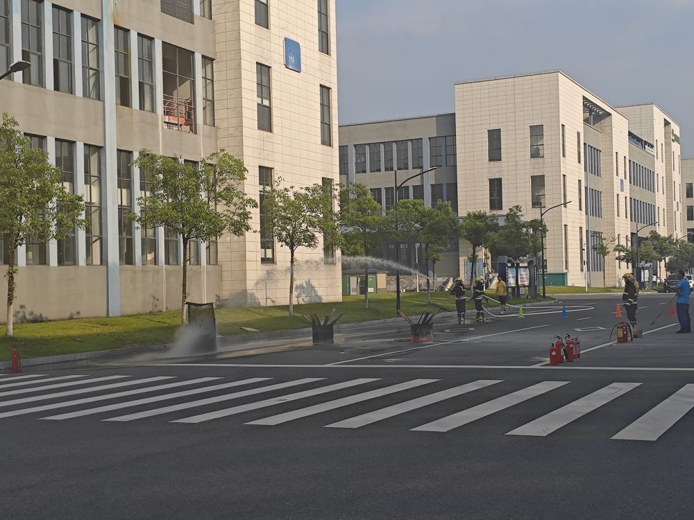 演练后半程,公司组建的义务消防队伍队员登场展示,先后演示了干粉灭火器灭火、消防栓高压水枪灭火及锂电池降温灭火等场景。尤其是“锂电池爆炸模拟”环节,队员们精准采用冷水降温法处置,直观呈现了新能源企业火灾处置的关键要点。